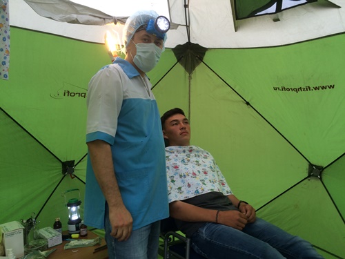 Вместо привычных врачебных кабинетов медики разместились в палатках. Так в Канинской тундре появился палаточный лагерь врачей. Возглавил врачебный десант начальник Управления здравоохранения Ненецкого автономного округа Андрей Апицын. В состав врачебной бригады вошли: два врача общей практики, педиатр, специалист УЗИ-диагностики, зубной врач, медицинская сестра, а также флюорографический отряд.